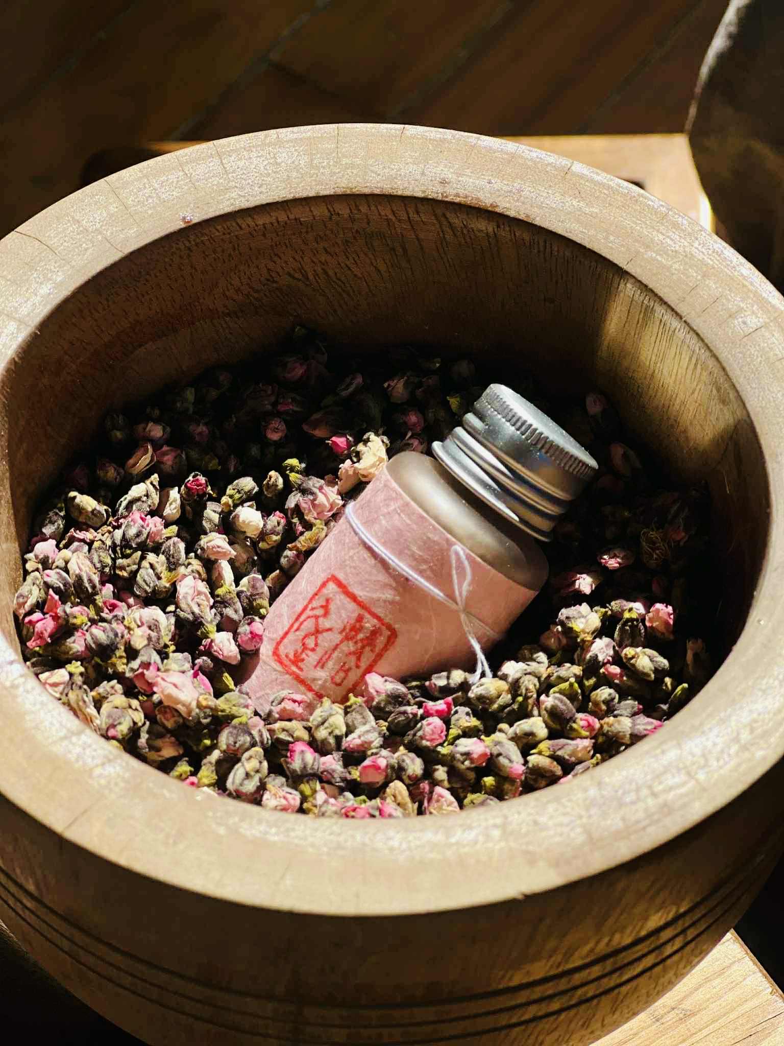 本次使用:桃花、玫瑰、茉莉、乳香、綠乳香、龍柏、檀香、紅安息香、金木犀⋯⋯等多款配方調製而成。