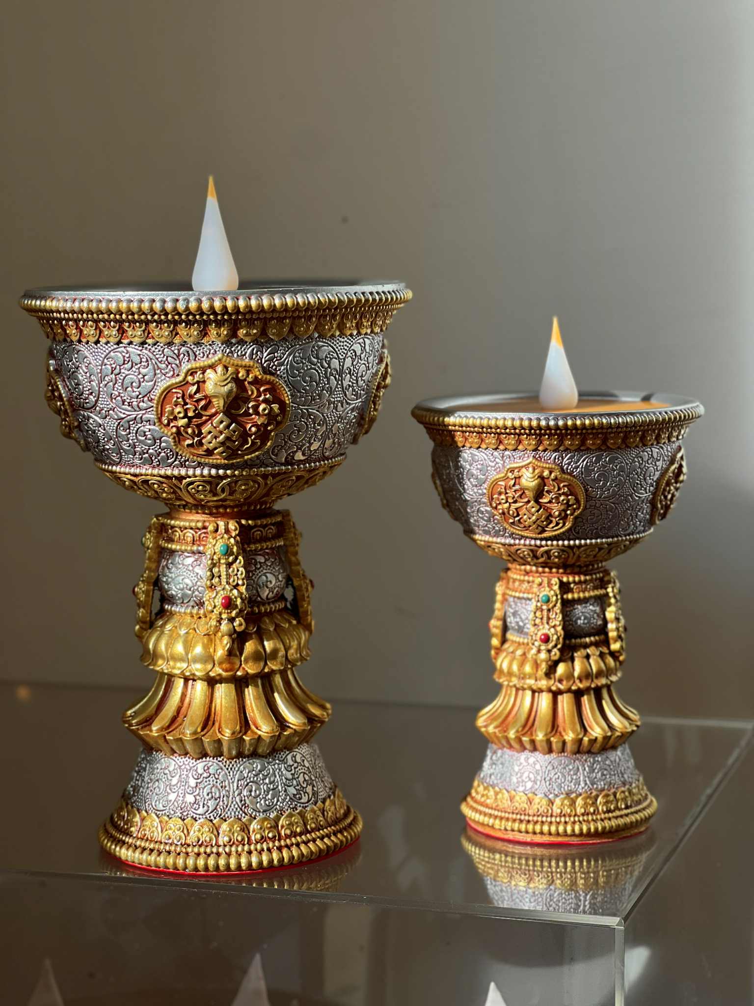 (備註:供養一個(置中)/或一對酥油燈(放左右側)都可以。)