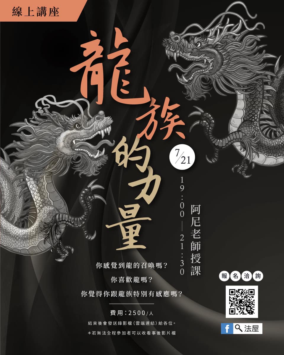 本堂線上講座,阿尼老師將介紹關於龍族的知識~